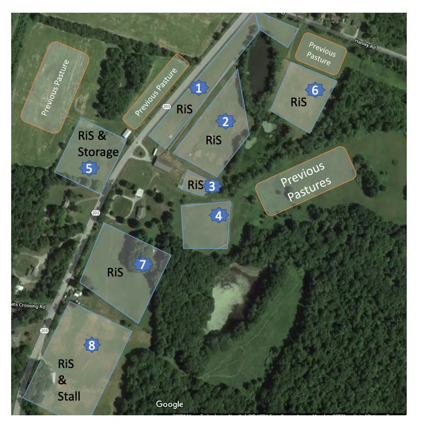 Paddock and field board capacity for 10–15 horses